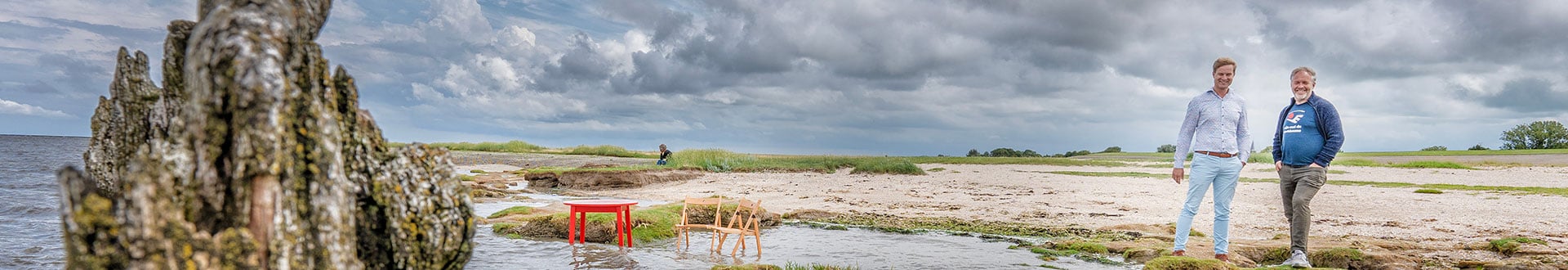 Het Friese dijktraject Koehool – Lauwersmeer grenst aan de Waddenzee. Peter Lieverdink en Bas Bijl zoeken samen naar de verbinding tussen waterveiligheid en natuurontwikkeling.